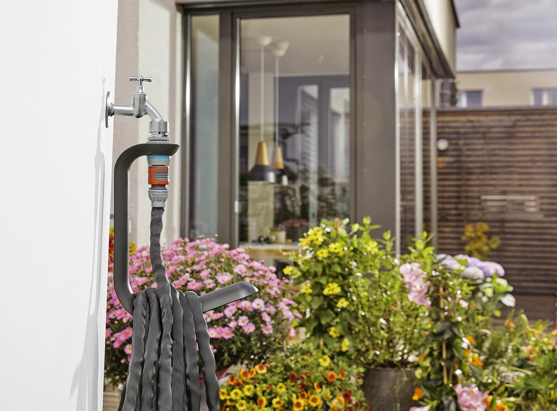 Lianoâ„¢ TapFix ist eine Schlauchaufbewahrung von GARDENA, welche ganz einfach und ohne den Einsatz von Werkzeug an praktisch jeden Wasserhahn (G 1", G 3/4" und G 1/2") angeschlossen werden kann, die clevere Konstruktion sorgt beim Einsatz oder der Lagerung dafür, dass die Wand durch den TapFix nicht beschädigt werden kann, die Aufbewahrung eignet sich bestens für maximal 20 Meter lange Lianoâ„¢-Schläuche von GARDENA, der Abstand zwischen Wasserhahn und Boden muss mindestens 50 cm betragen, eine innovative UV- und Frostbeständigkeit sorgt für eine lange Haltbarkeit und dafür, dass der TapFix das ganze Jahr über im Freien bleiben kann, soll der TapFix und Textilschlauch Lianoâ„¢ dennoch über die Wintermonate verstaut werden, kann dies durch eine Lochaufhängung auf der Rückseite des TapFix einfach an der Keller- oder Garagenwand geschehen, GARDENA bietet auf den Lianoâ„¢ TapFix eine Herstellergarantie von 5 Jahren
