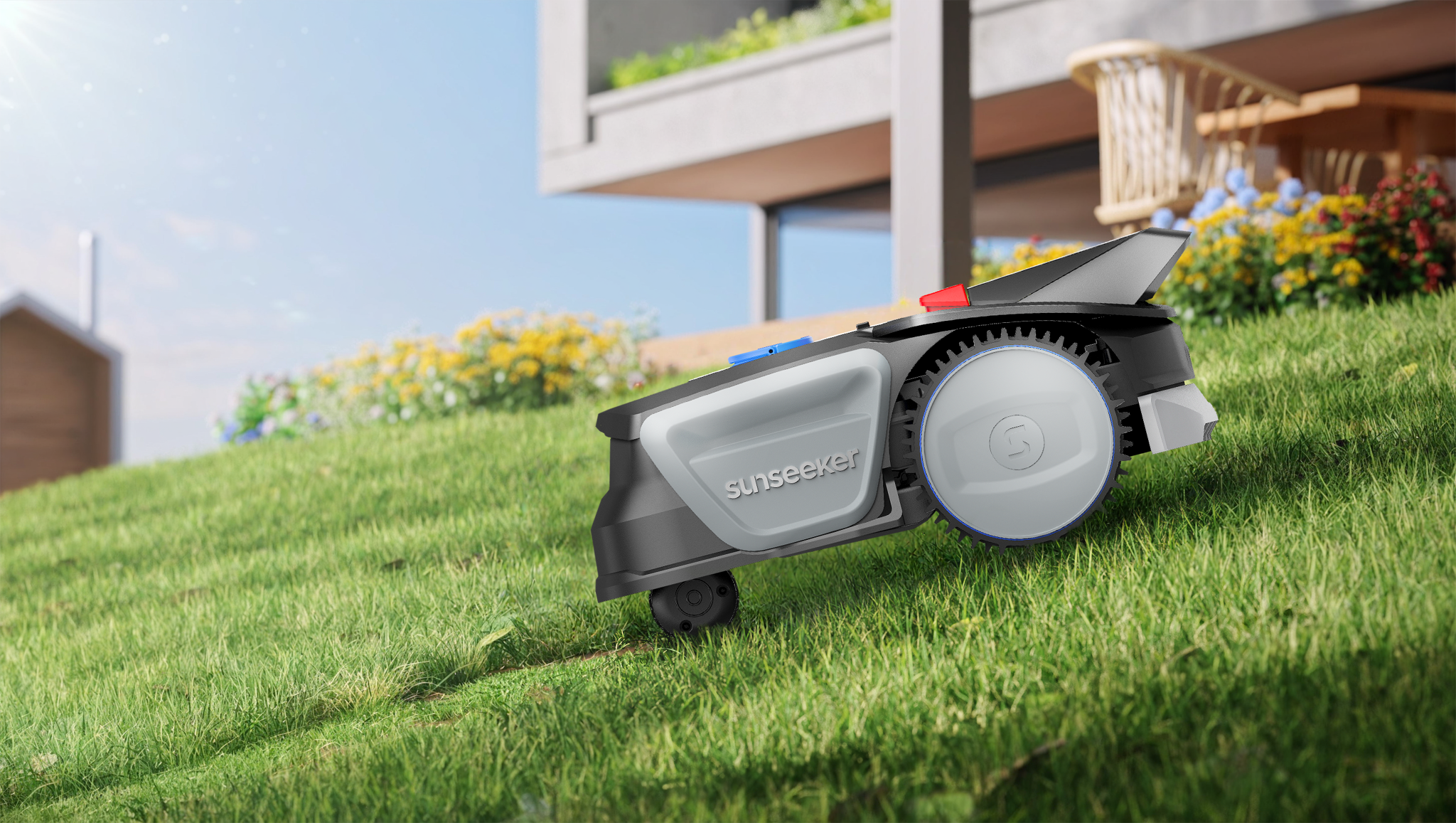 Das robuste IPX5-Gehäuse ist gegen Regen und Spritzwasser geschützt, während das Floating Cutting Deck auch auf unebenem Untergrund einen gleichmässig sauberen Schnitt sicherstellt.