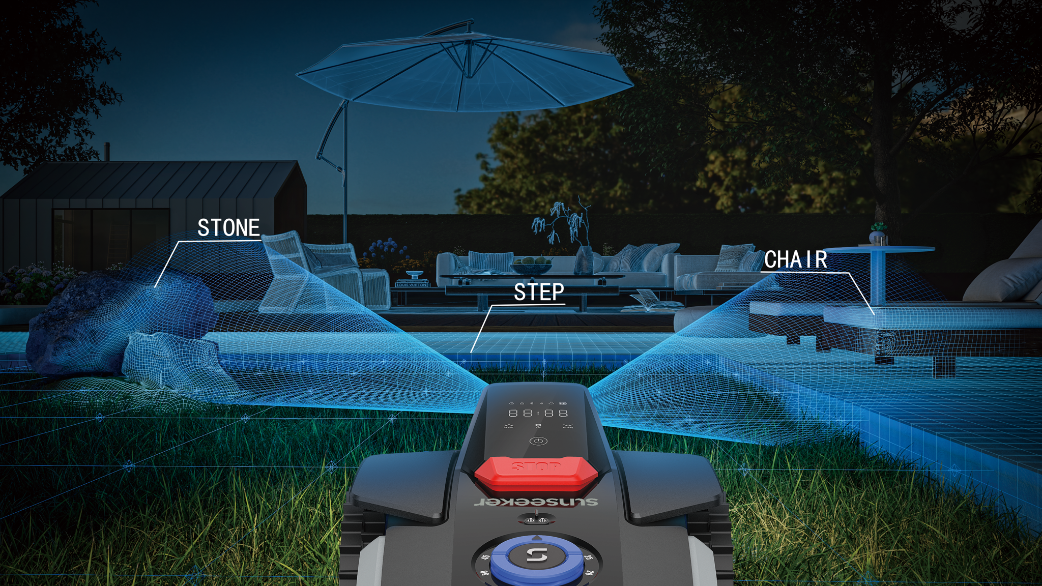 Die integrierte AI-Kamera zur intelligenten Hinderniserkennung gewährleistet eine sichere Navigation und schützt zuverlässig Garten, Möbel und Tiere.